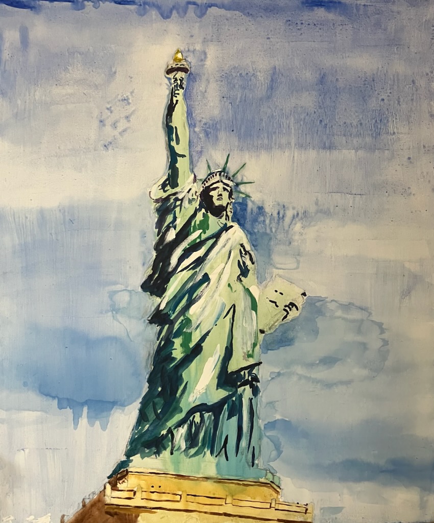 とにかく朝から地下鉄のって自由の女神へ(昨日、車で痛い思いしているのでもう電車にした)。チケットも変えてもらえて、無事、自由の女神行ってスケッチ取れた。スケッチ取っていたらカップルの男の人に、“すごく良いね、線が生き生きしてる”と言われ、“本当ですか!?”“普段は港湾労働者をしているんです”といったら。“No You are An artist”と言われた。これは本当うれしい言葉だと思っていたら、カップルは入植者の島であるElis Islandで降りて行った。私のアーティストライフへの入植の夢を与える代わりに、彼らは成功を目指してニューヨークに移り住むのかなと思った。彼らの成功を祈らないと。